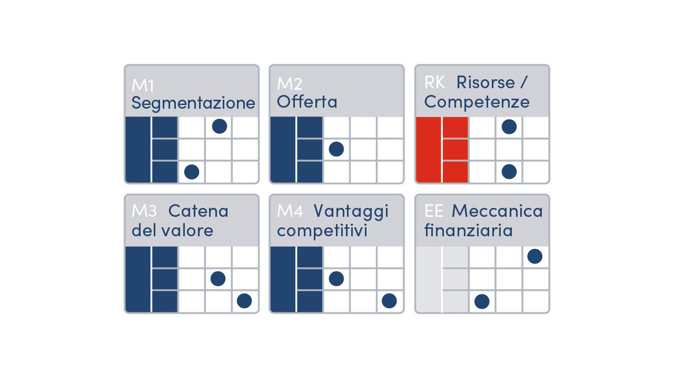- All’inizio vengono definite provvisoriamente le intenzioni imprenditoriali, che in molti casi si riferiscono ai livelli desiderati della quota di mercato, del fatturato, dell’utile o del valore aziendale. In alternativa, si potrebbero precisare intenzioni non finanziarie come ad esempio la sostenibilità.